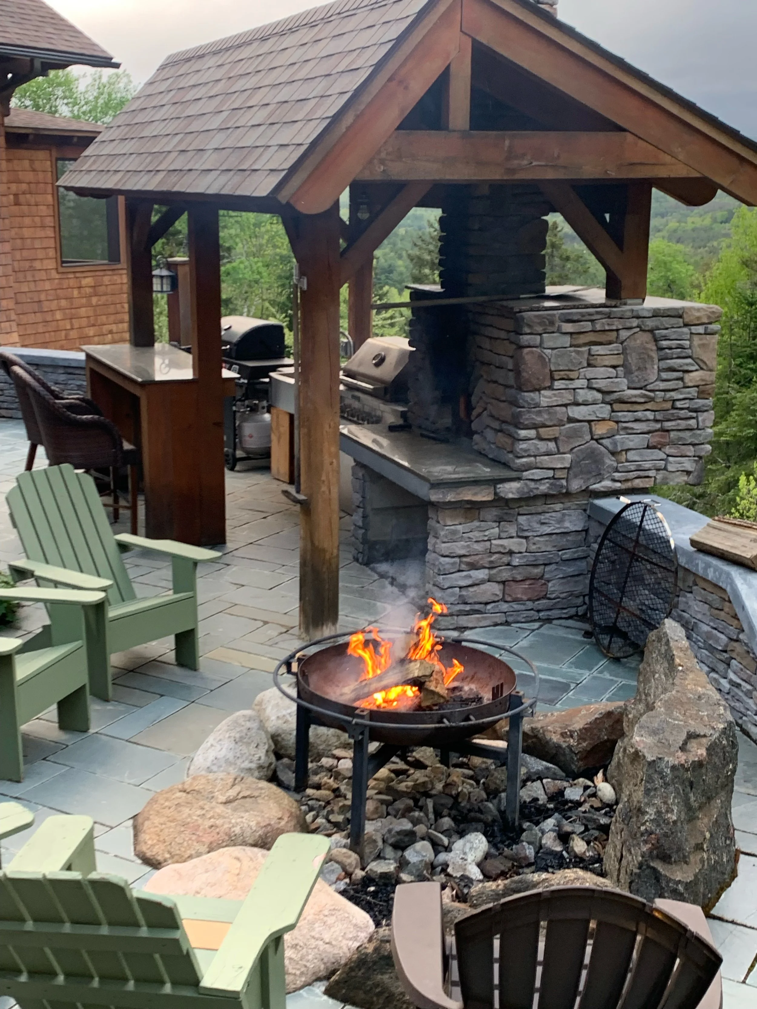 Firepit and Adirondack Chairs